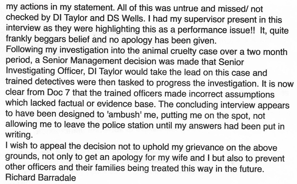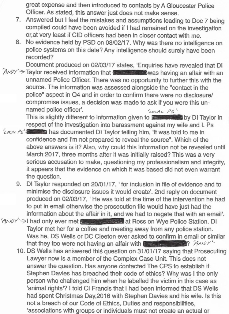 DS Husbands’s very non-committal response!! Have a look and consider his first paragraph. West Mercia Police had questioned me about a suspected affair, thus bringing my marriage of nearly 30 years and my family life into my work life. West Mercia Police were then expecting me to exclude my wife from any further communications regarding this!! Well DS Husbands, if you have a partner, I want you to go home and ask them if the tables were turned, whether or not they would be OK with that?