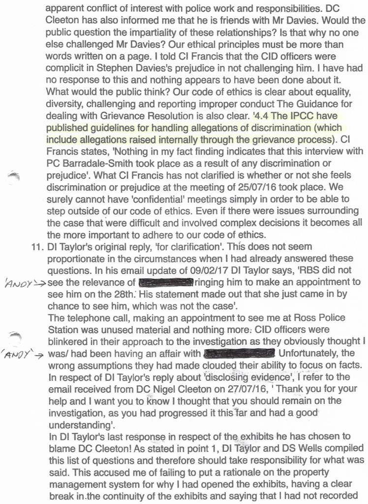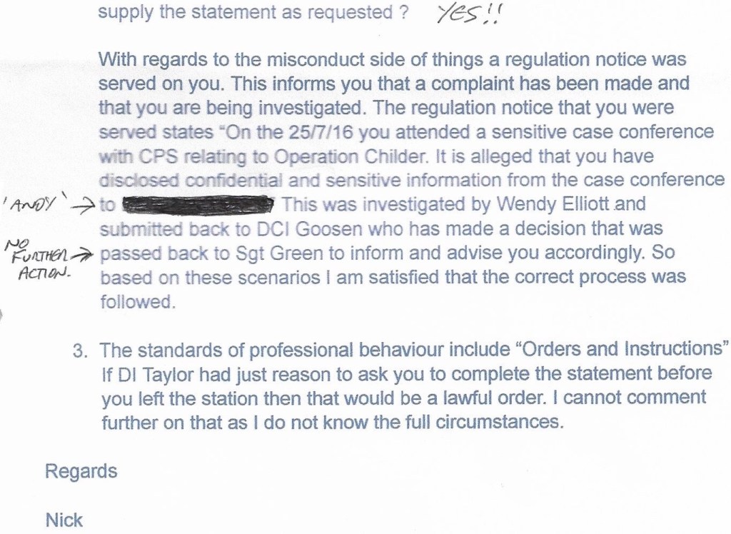 What DS Husbands, who was working in the Professional Standards Department had apparently forgot to do before writing the above letter, was to read this 109 page Document!! (And lets not forget that DI TAYLOR previously worked in PSD too)!!