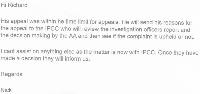 So….presumably the Independent Office for Police Conduct would be telling Stephen Davies the same thing……What do you think??