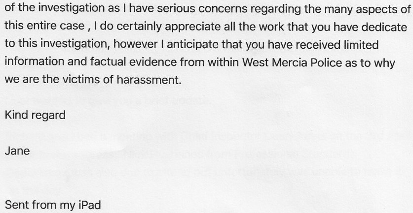 Great, starting to look like we were getting somewhere and transparency would be provided!! Jane contacted the sergeant conducting our harassment crime investigation….