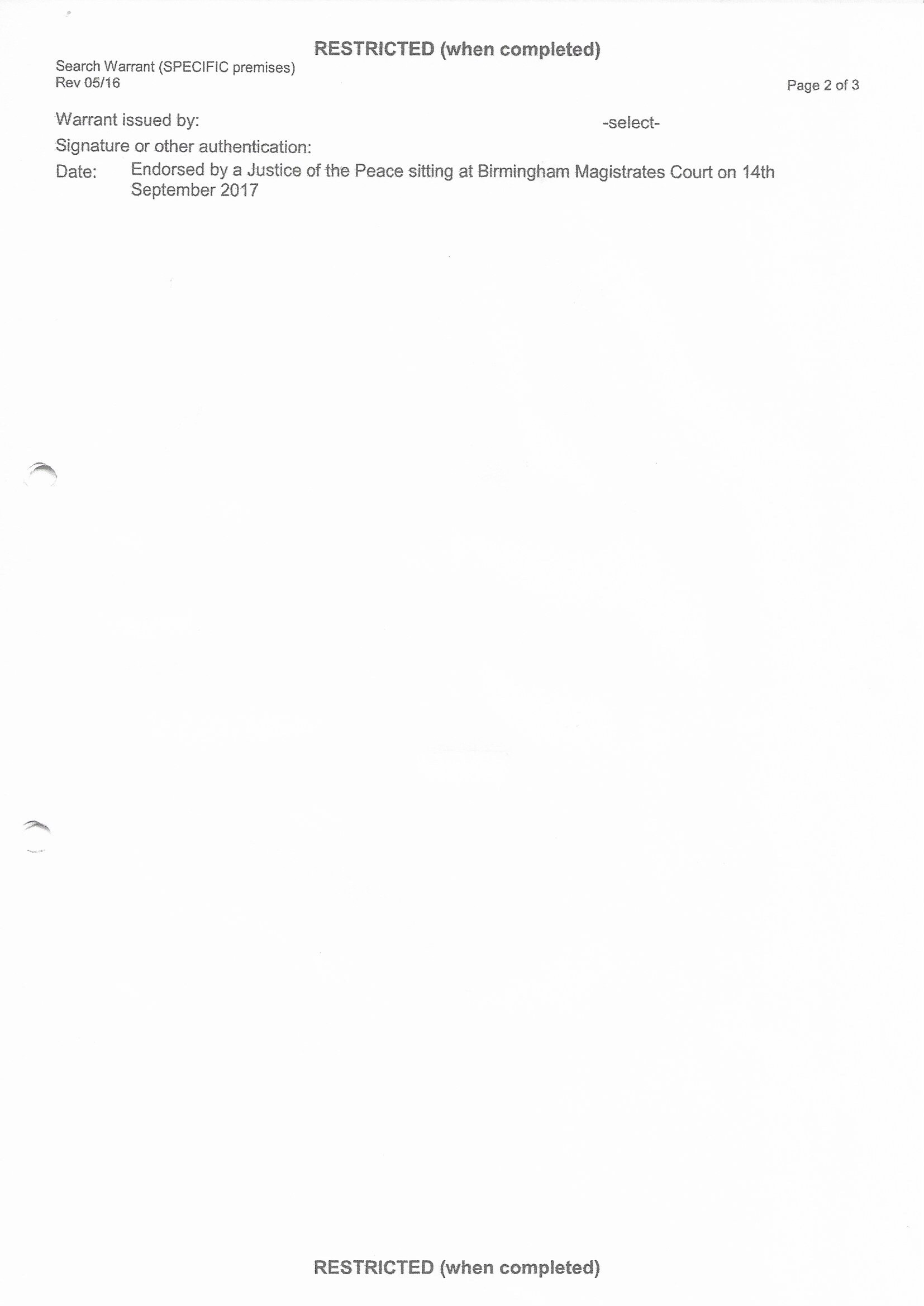 Once again my lay person view kicks in and asks the question…….. are officers normally ORDERED when they are sent out on warrants???? Or are they just selected and sent in a normal and routine fashion. If I was to get my crystal ball out again it might just tell me that the warrant was endorsed on 14 Sept 2017 but UNSIGNED (is this the norm?). I can then envisage some of the chat among the Kidderminster Detectives over that weekend debating if the warrant was legal as it was UNSIGNED. However looks like Rank then stepped in and ORDERED the warrant.