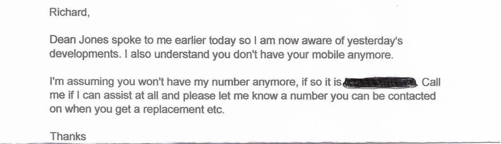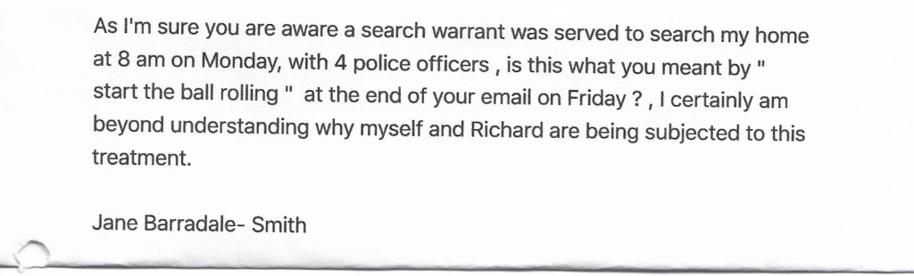 So they had obtained a warrant and interviewed me, based on information the police had been given 12 months earlier…….and after I had already been interviewed about it!