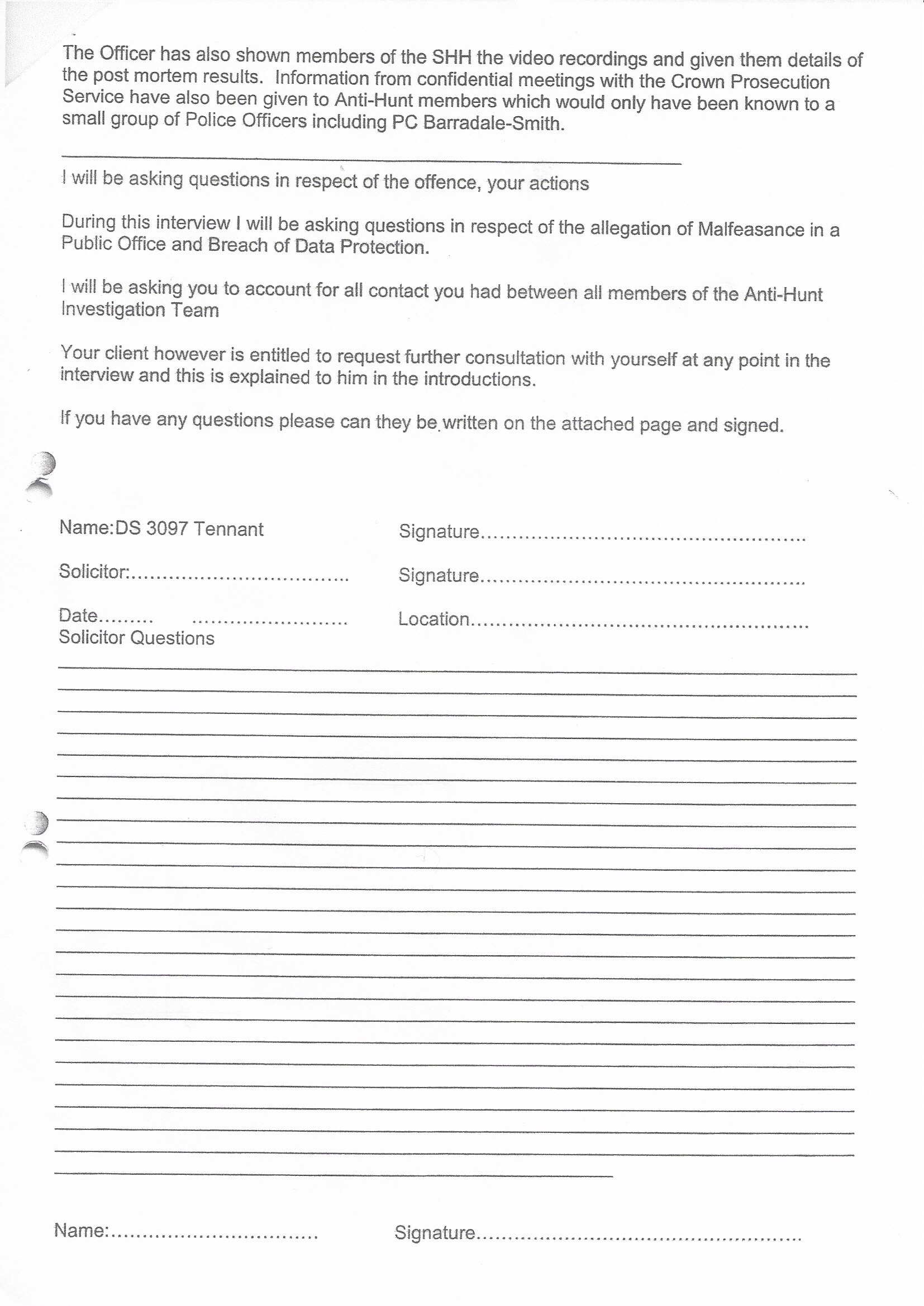 Before going into interview the solicitor and I were given written disclosure, a notice around what I was going to be questioned about!!,
