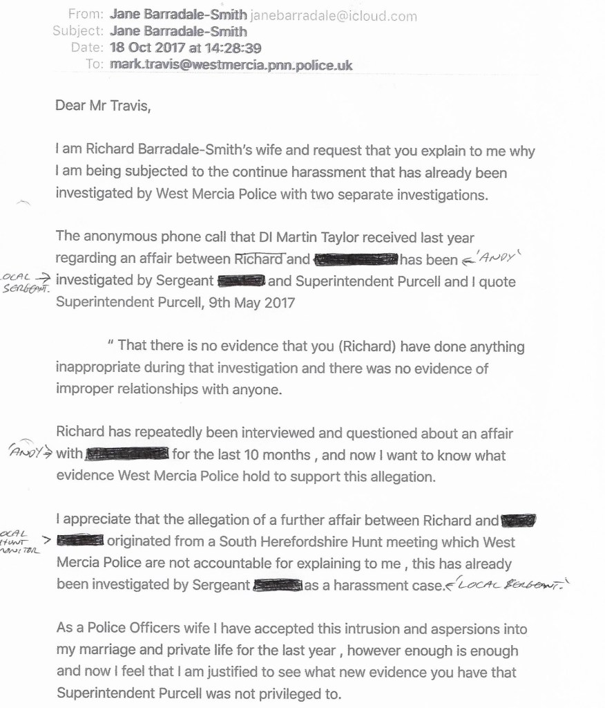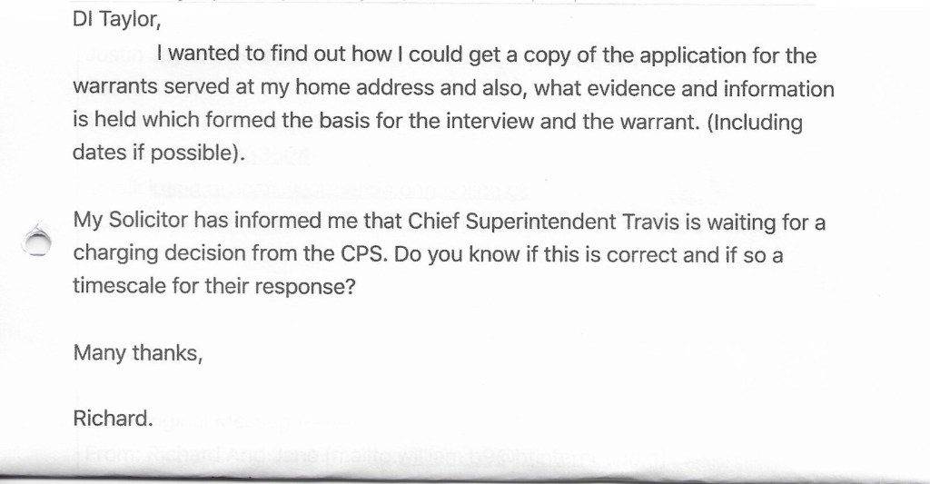 He did phone her and he told her that they had NO further evidence! Jane said that DI TAYLOR then said something that she found extremely alarming and threatening, ‘I’ve got your life in my hands’! Jane was at work when she received the call and found it so intimidating and upsetting, that she had to leave work early.