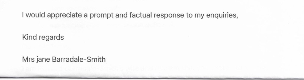 A fair enough question to ask considering the stress Jane had been put through. A question that would obviously deserve a respectful, courteous and sympathetic answer from a chief officer of a ‘caring’ organisation. What do you think?