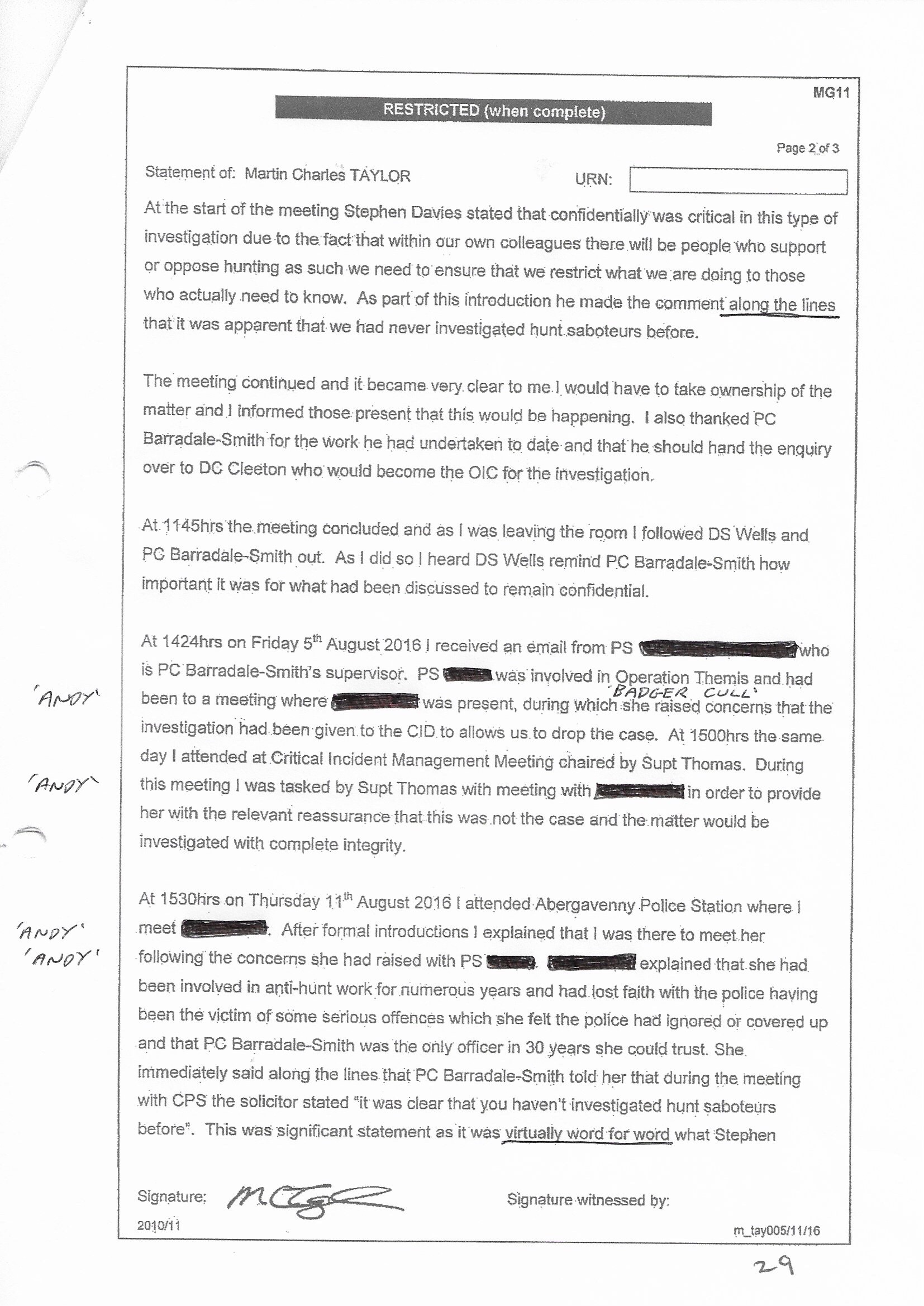 it was also interesting to see in DI Martin Taylor’s statement page 2 of 3 that “within our own colleagues there will be people who support or oppose hunting” it is nice to know (not surprising) that some police are happy to support illegal activity