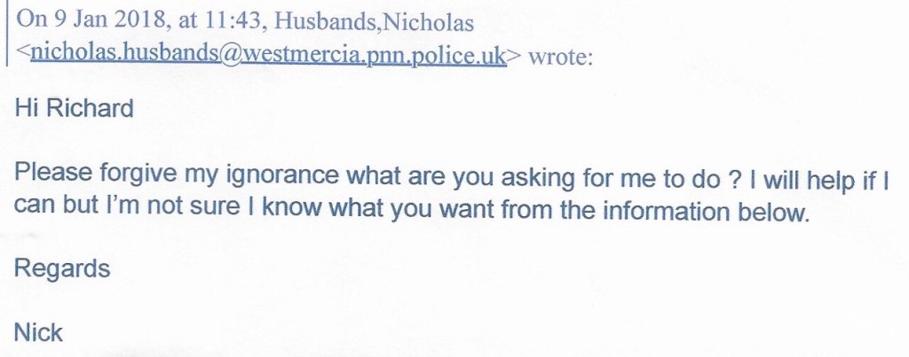 On 18th December 2017, DS Nicholas Husbands sent me this email.