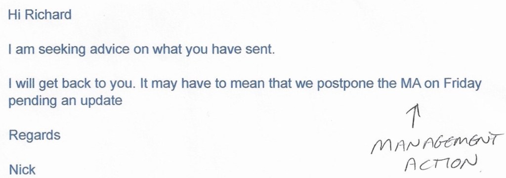 Would I be getting Management Action? We’ll see a bit later! But my concerns about Stephen Davies hadn’t been addressed and I couldn’t leave that either!