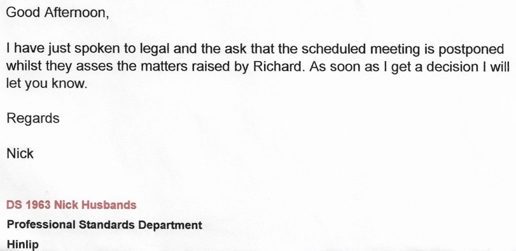 But…….just got totally ignored. They were ignoring me, evidently ignoring Professional Standards, (as you will see a little later) and ignoring The Public Interest Disclosure Act.