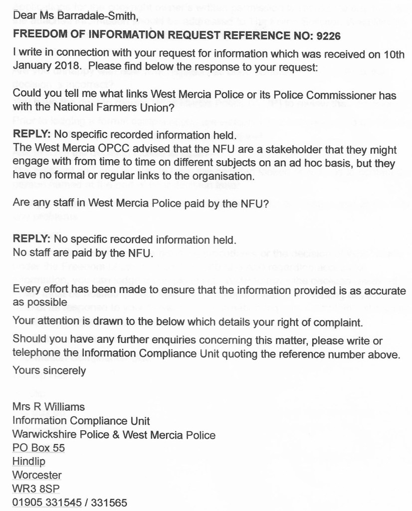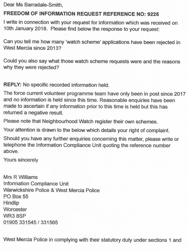 So…….Jane put in some Freedom of Information Requests to see what West Mercia Police would say about it!! What do you think?