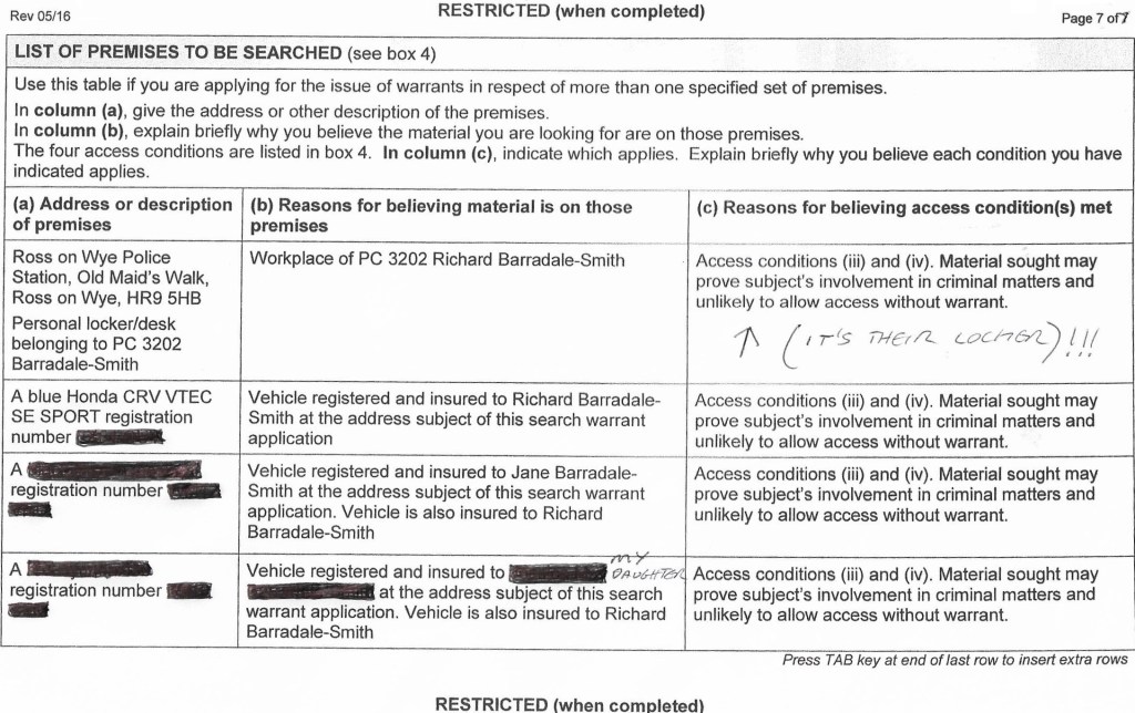So why the hell were West Mercia using “old information” and NOT complying with the conditions of a Warrant.