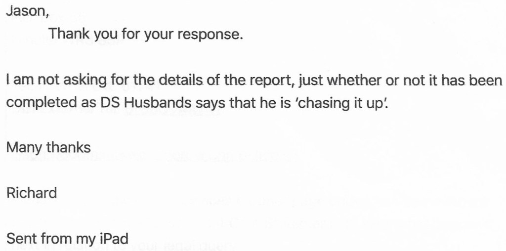 I had copied DS Husbands into the email and he responded…….