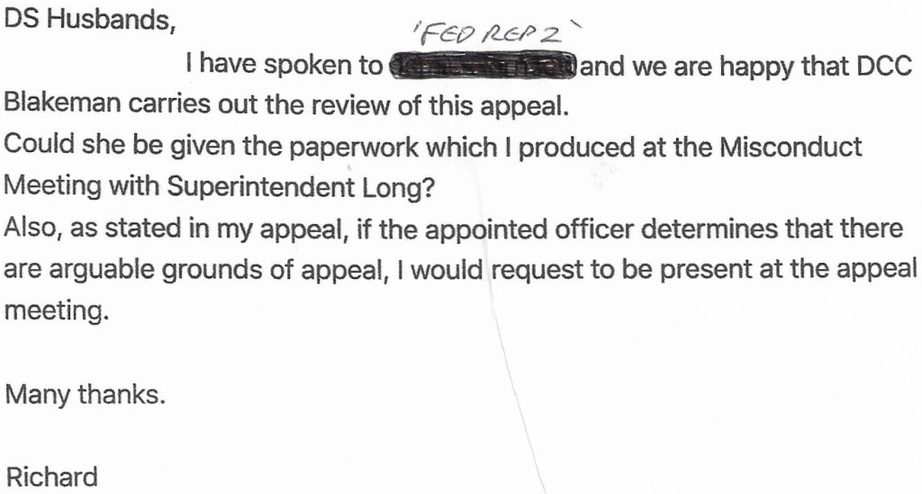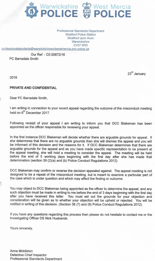 And on 22/01/18 he sent this in respect of my appeal to the finding of Misconduct.